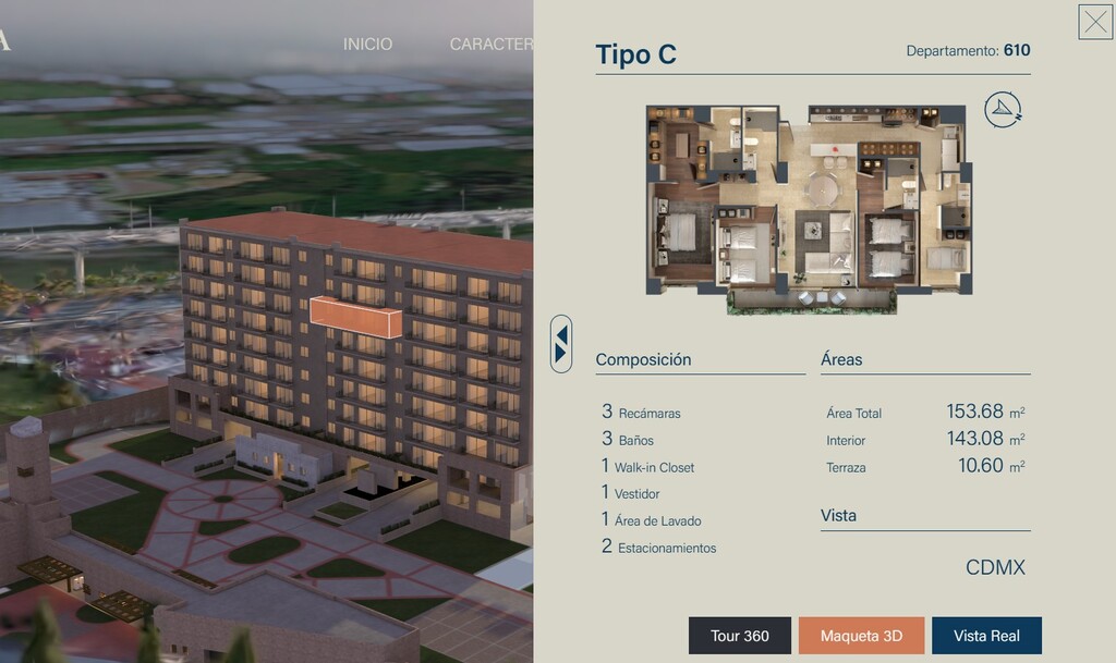 Reduce fricciones, acelera el cierre y elimina la incertidumbre del comprador. Ofrece una experiencia clara, interactiva y confiable: vistas, unidades, precios, ubicación y disponibilidad al instante. Tus asesores venden mejor y tu cliente decide más rápido.
